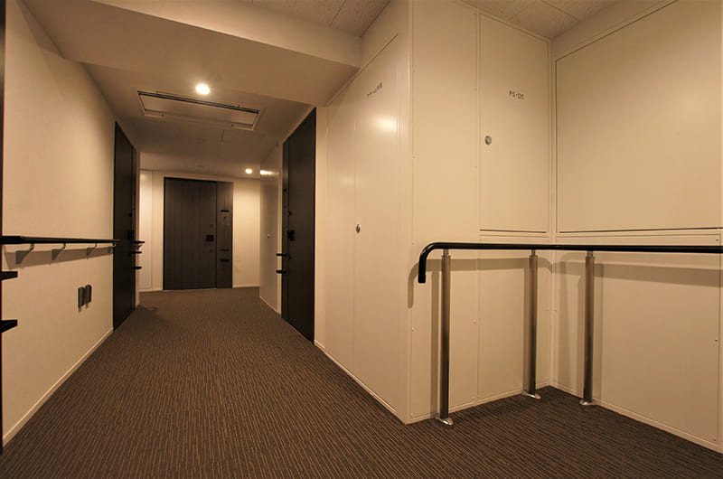 周辺の景観と調和しながらも、風格ある存在感を印象付ける堂々としたファサード。エントランスホールは、質感豊かなタイル敷と透明感あふれるガラスの自動扉が優美な雰囲気を演出。プライベート性に配慮した内廊下は、住まう人をやさしく出迎えます。風除室には鍵をかざすだけで解錠するオートロックを採用しているほか、宅配ボックスやメールボックスも完備しています。